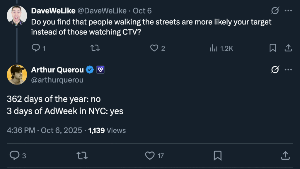Each time, they were showing (not telling): there’s life beyond Google & Meta. Creative OOH can work for B2B. It gets press attention, drives future sales convos, and sucks up more mind share for your brand.